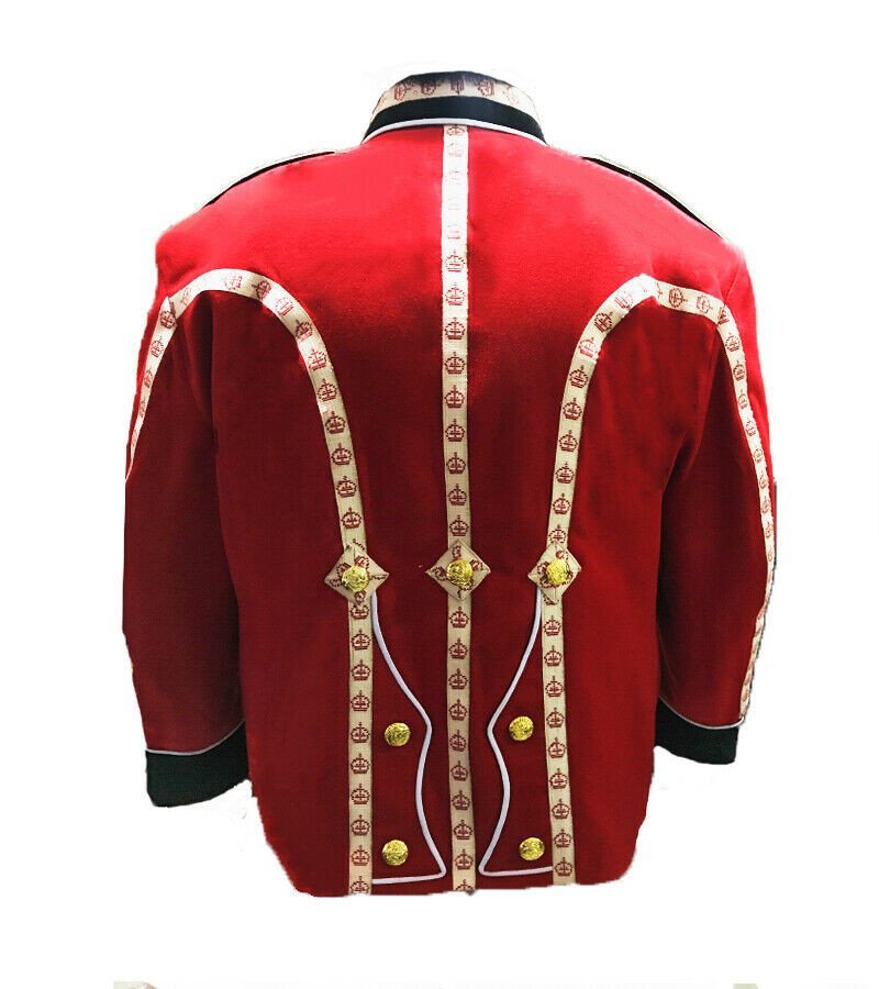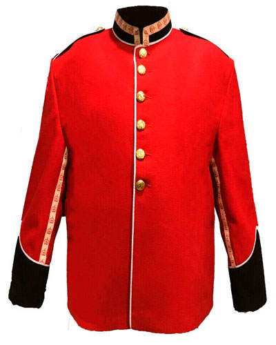 Home Highland Jackets Jackets Tunic Band Jacket with crown tape & white piping. Red Blazer body. Gold thistle button
