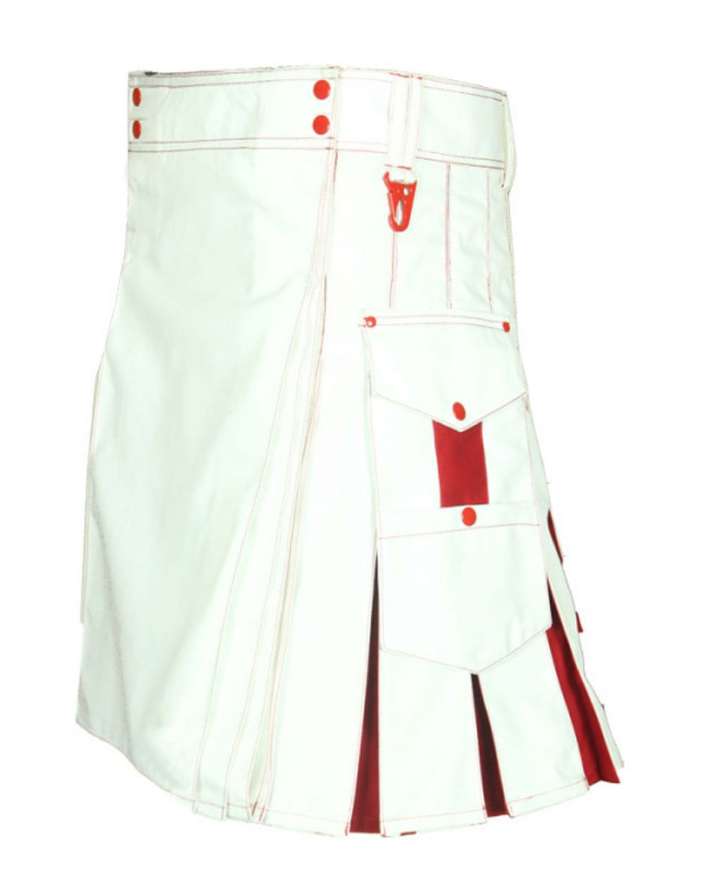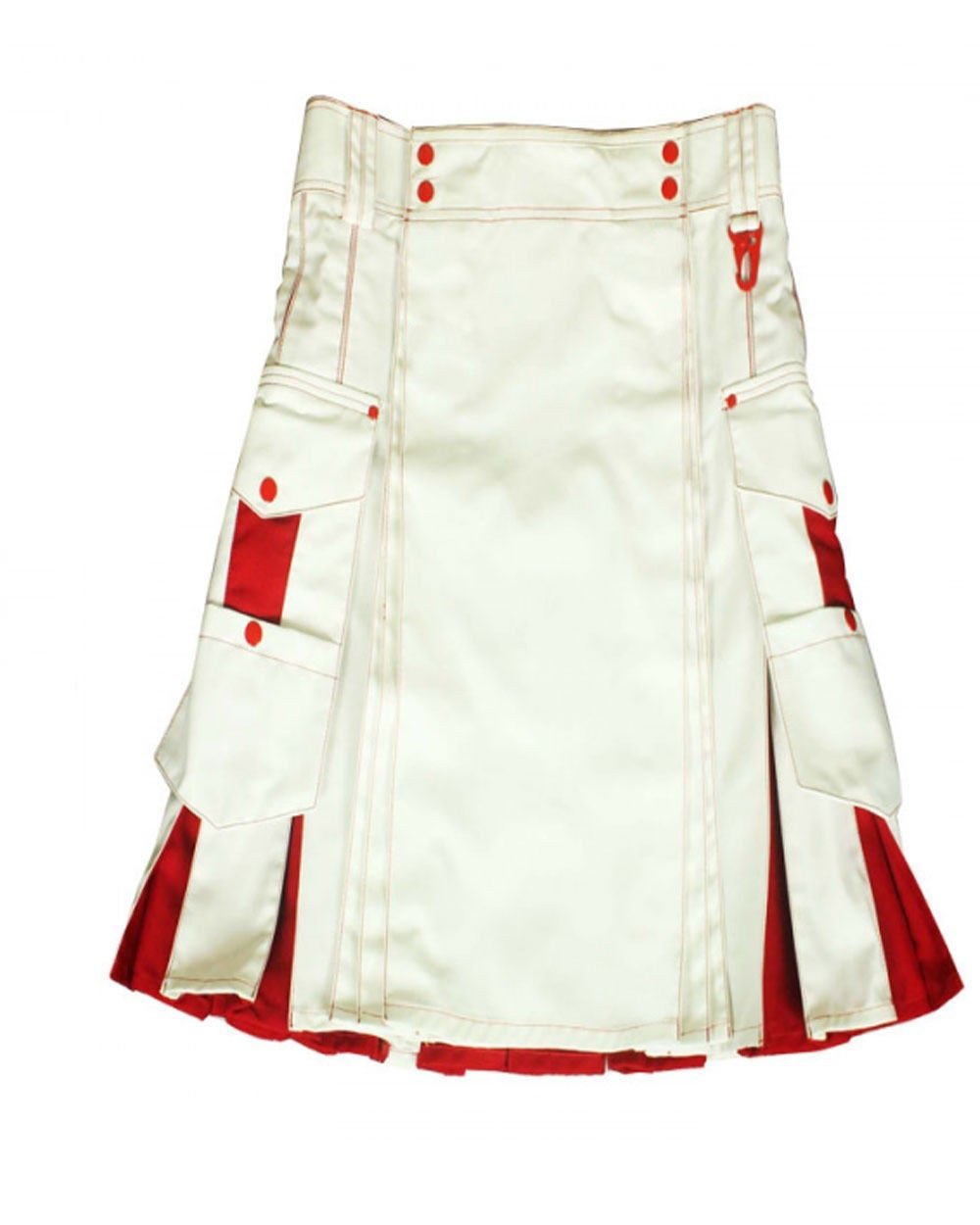 Home Highland Kilt Men's Kilt Cotton Fashion Hybrid White And Red Kilt